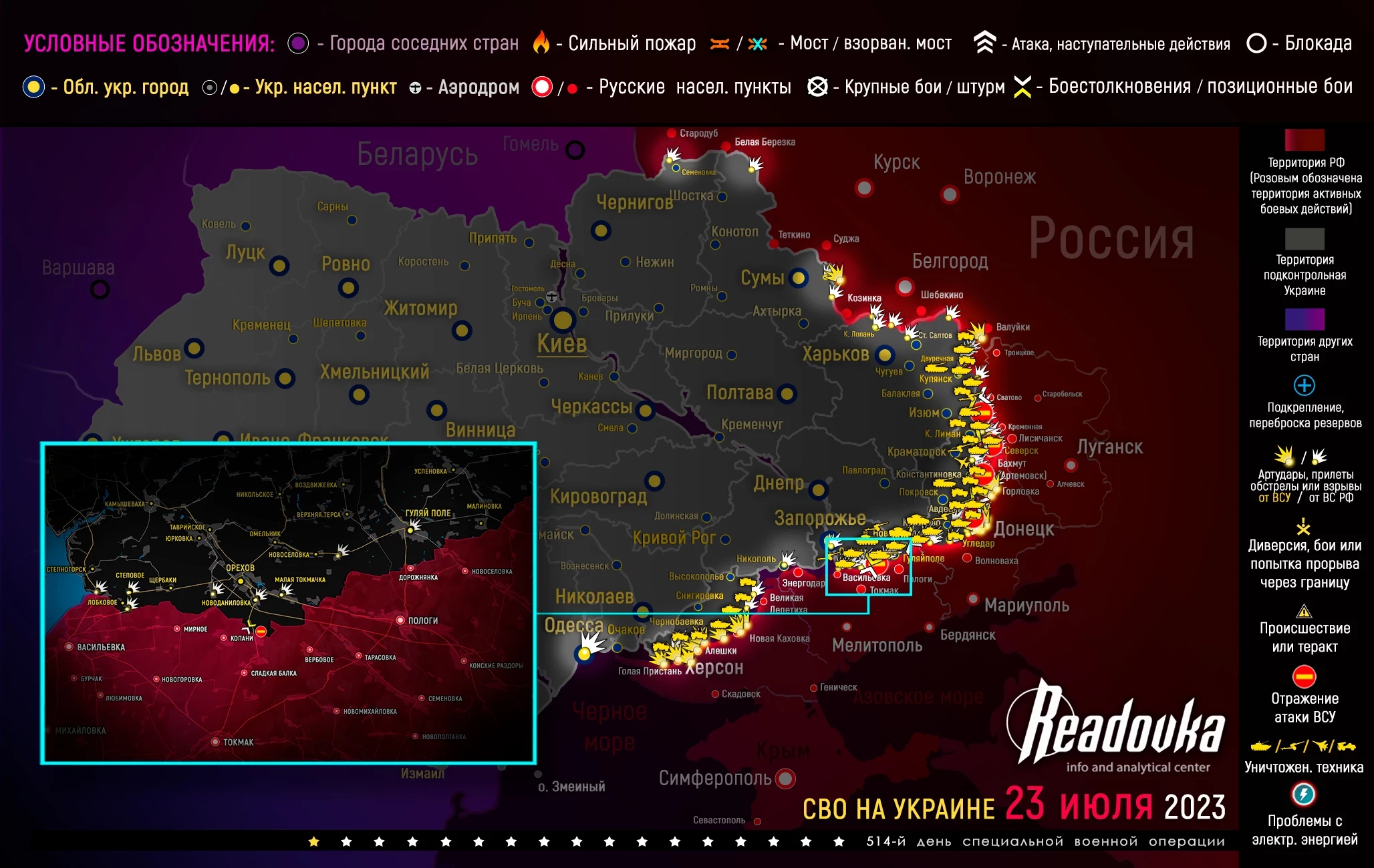 Карта военных действий и ситуация на фронтах вечером 23 июля от Телеграм-канала «Readovka»