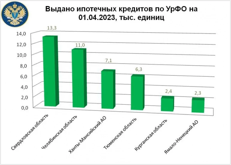 После Челябинской области в рейтинге расположились Тюменская (6,3 тысячи кредитов на приобретение жилья на сумму 21,4 млрд рублей), ЯНАО (2,3 тысячи кредитов на сумму 9,9 млрд рублей), Курганская область (2,4 тысячи кредитов на 5,4 млрд рублей).