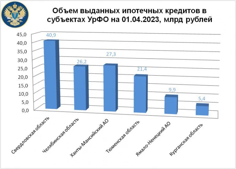 Первую строчку в рейтинге заняла Свердловская область. Жители соседнего региона взяли 13,3 тысячи ипотечных кредитов на сумму 40,9 миллиарда рублей. На втором месте — Ханты-Мансийский АО (выдано 7,1 тысячи ипотечных кредитов на 27,3 миллиарда рублей).