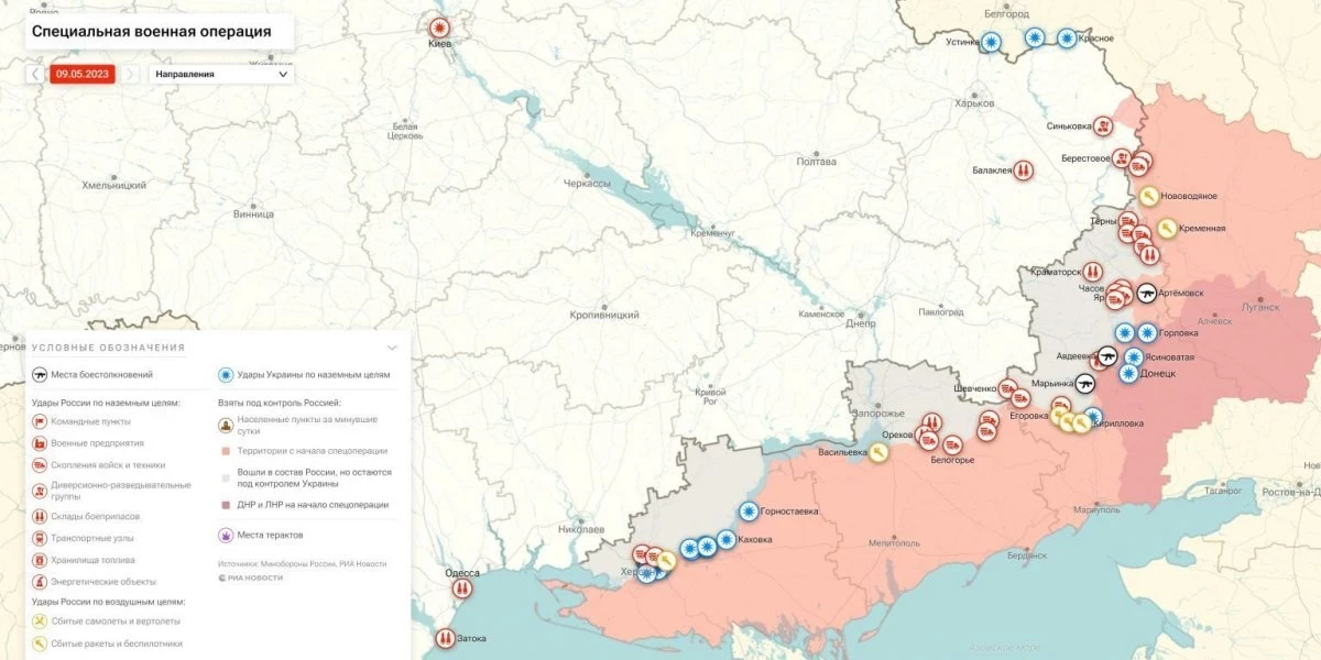 Спецоперация России на Украине сегодня 9 мая 2023. Карта боевых действий, сводки с фронта СВО, новости, обстановка в зоне проведения СВО, обзор событий, Донбасс, ЛНР, ДНР 9.05.2023
