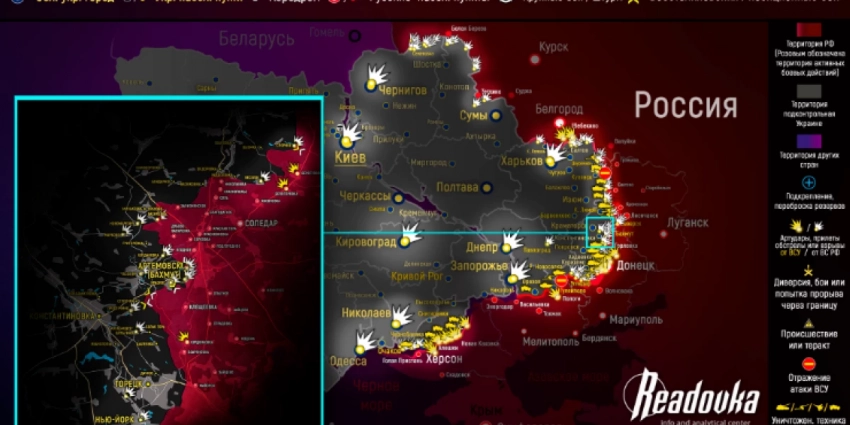 - На западе Бахмута подразделения ЧВК «Вагнер» продолжают наступление на позиции ВСУ. Сообщается об атаках российских подразделений в направлениях Ивановского и Часова Яра. Под обстрелы попали позиции ВСУ в районах Васюковки, Орехово-Василевки, Новомарково, Ступочек, Предтечино, Александро-Шультино, Дылеевки.