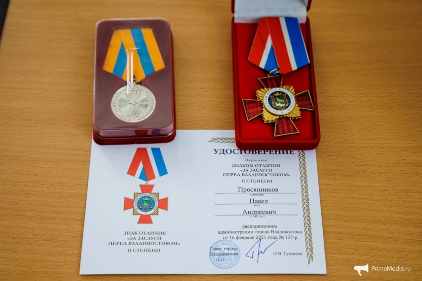 Награды Павла Просянникова. Фото: Евгений Кулешов, ИА PrimaMedia