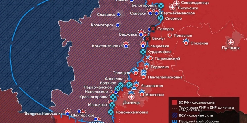 Российские подразделения наступают на Курдюмовку после зачистки Майорска, а западнее Зайцево захвачены пять взводных опорных пунктов. ВСУ концентрируют резервы в Торецке и Кирово.