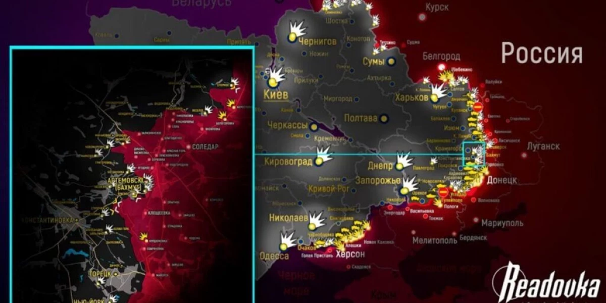 - Новая карта боевых действий, новости Украины сегодня, 10 мая 2023 г.. Сводка боевых действий на Украине, Бои за Артёмовск (Бахмут) карта СВО: