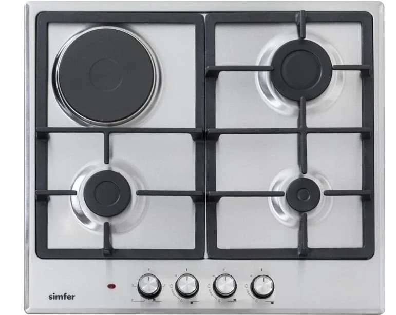 Вошла в наш топ варочных панелей комбинированная модель Simfer H60V31M516. Эта варочная панель предлагает уникальные возможности благодаря сочетанию трех газовых и одной электрической конфорок. Она станет идеальным выбором для тех, кто любит экспериментировать на кухне и готовить разнообразные блюда. Simfer H60V31M516 имеет компактные размеры и лаконичный дизайн, что позволяет ей органично вписываться в интерьер любой кухни. Рабочая поверхность выполнена из прочной и долговечной нержавеющей стали, обеспечивая надежность и легкость в уходе. Управление варочной панелью осуществляется с помощью четырех поворотных переключателей, которые встроены в панель. Они позволяют регулировать интенсивность пламени для каждой конфорки. Важно отметить, что встроенный электроподжиг значительно упрощает и ускоряет процесс работы с панелью, позволяя безопасно и быстро запускать горелки.