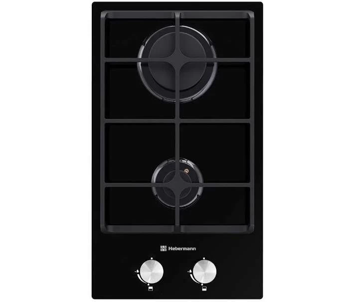 Газовая варочная панель Hebermann HBGG 302.1 B, ширина 31 см, закаленное стекло, 2 конфорки