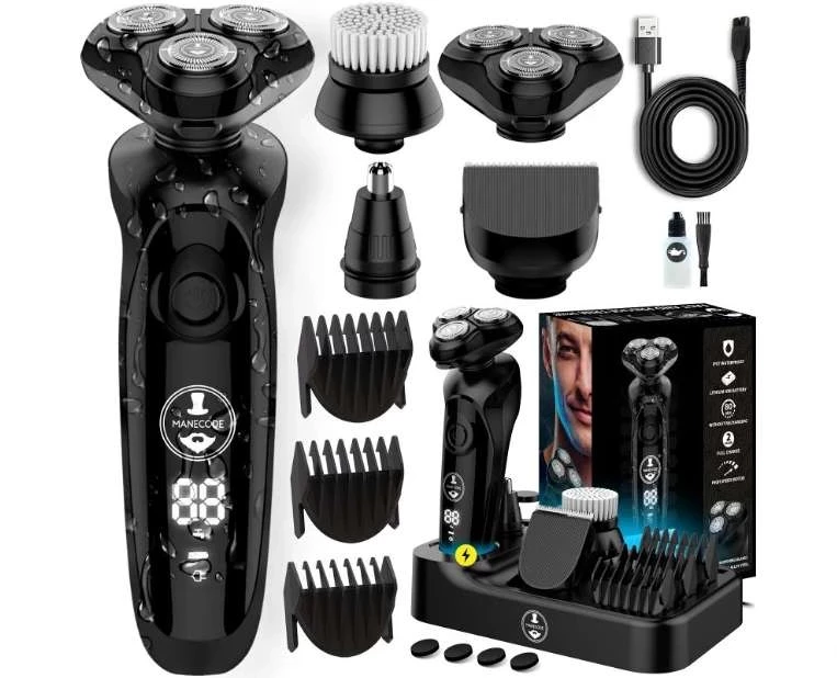 Электробритва мужская Manecode MAVERICK с технологией FLOATING 8 и зарядной станцией — В комплекте триммер для бороды и носа с набором насадок