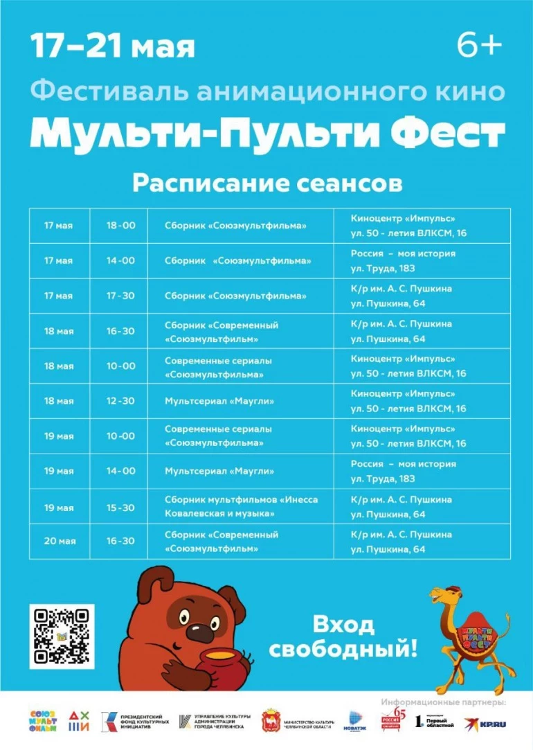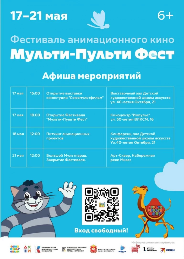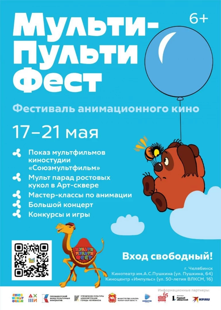 В Челябинске состоится масштабный анимационный фестиваль «Мульти-Пульти Фест». На нём с 17 по 21 мая в городских кинотеатрах бесплатно покажут легендарные мультфильмы киностудии «Союзмультфильм» и современные анимационные фильмы. Праздник завершится на набережной реки Миасс парадом с ростовыми куклами.