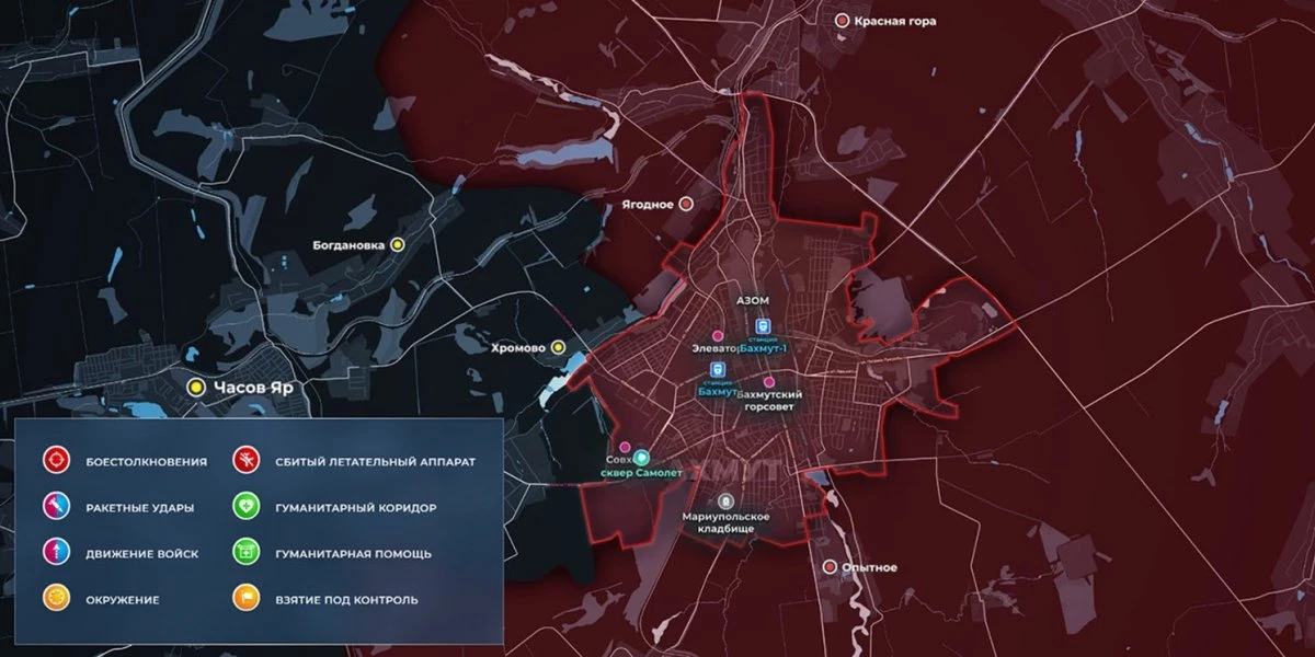 Карта боевых действий на Украине сегодня, обстановка к утру 26 июня 2023 года от Mash. Бои на Артёмовском направлении