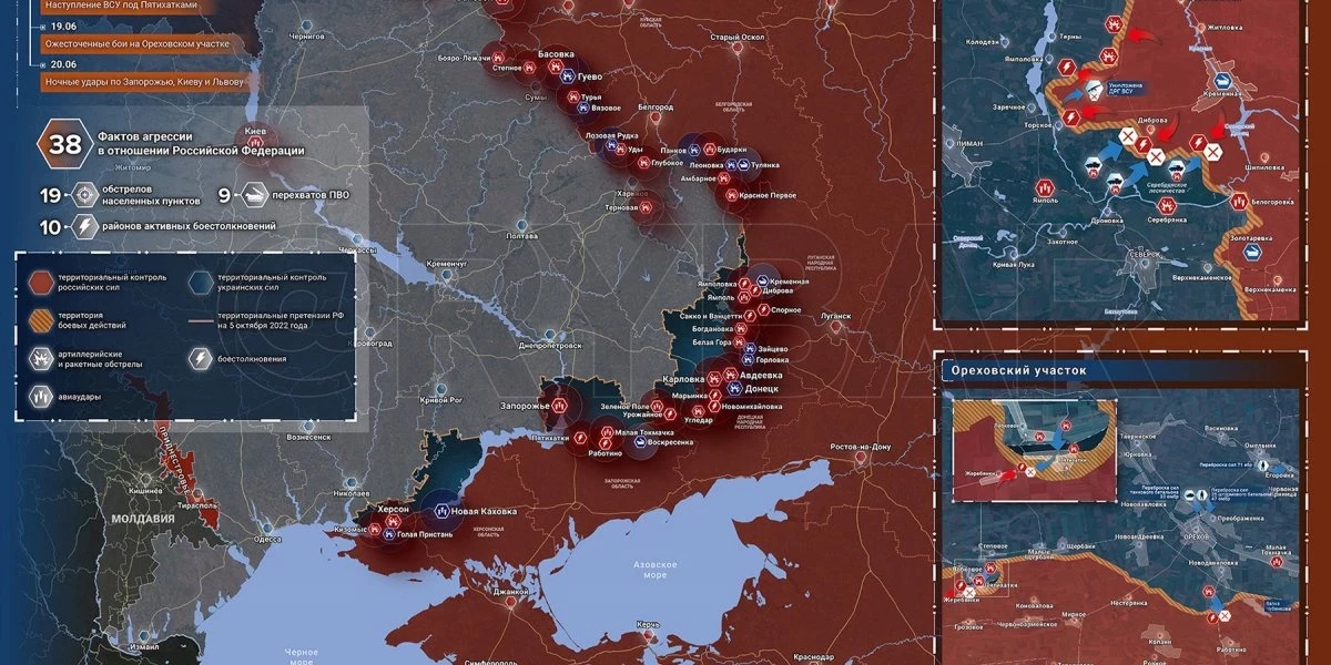 Карта боевых действий на Украине, к утру 26 июня 2023г., от РИА Новости. Карта специальной военной операции.