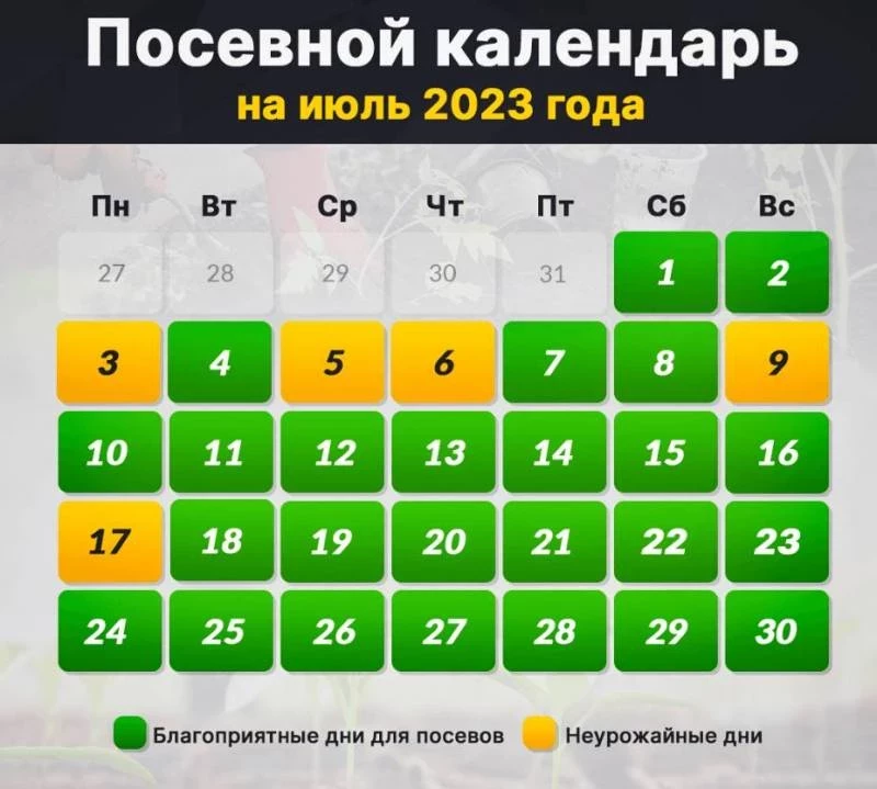 Лунный посевной календарь на июль 2023 года
