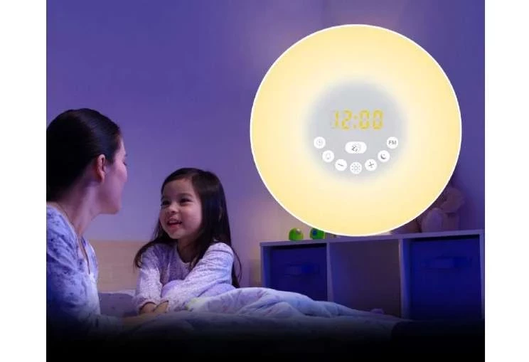 Умный электронный будильник Evo Chrono с подсветкой и световой будильник с имитацией рассвета / Часы настольные и каминные с FM радио и 6 мелодиями