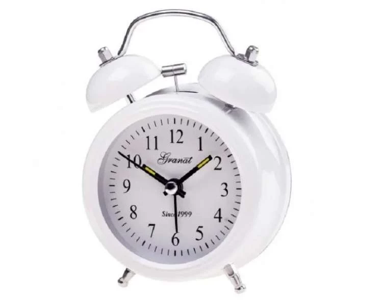 Будильник металл громкий гранат PK123-11 белый с колокольчиками размер 8,8х12,5 см