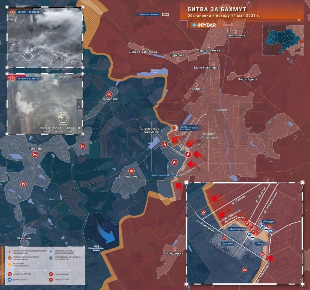 Карта боевых действий: Битва за Бахмут обстановка по состоянию на 10.00 15 мая 2023 года