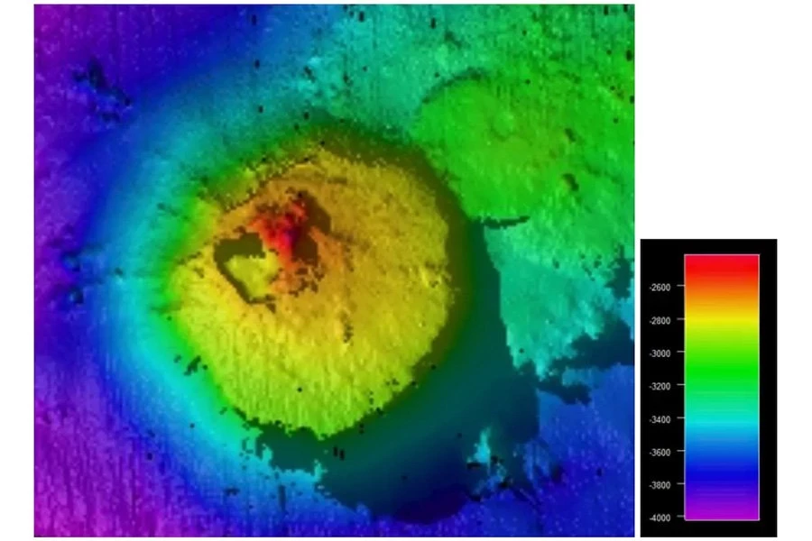 Расположенная примерно на 2400 метров ниже уровня моря, подводная гора имеет высоту более 1600 метров и занимает площадь 14 квадратных километров.