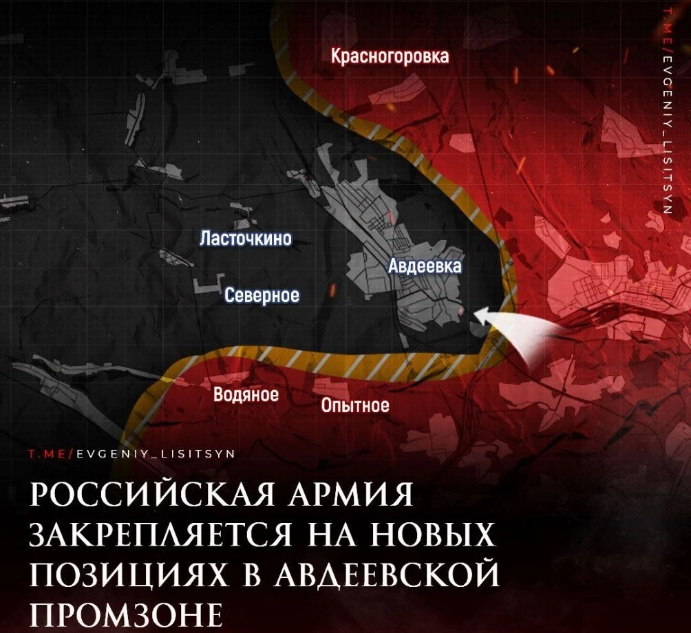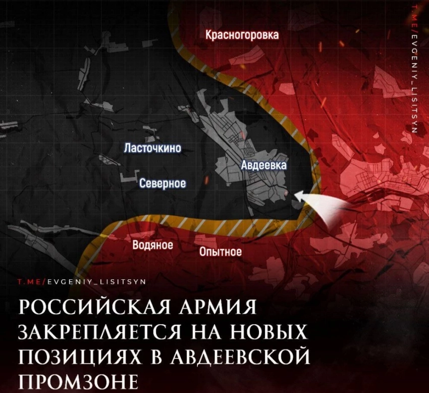 В интернете появилась видеозапись с брошенной позиции ВСУ в Авдеевке в районе промзоны с южной стороны города. Данное видео было опубликовано в Telegram-канале «Военный осведомитель». Из видео можно понять, что российские военнослужащие закрепились на захваченных украинских позициях.