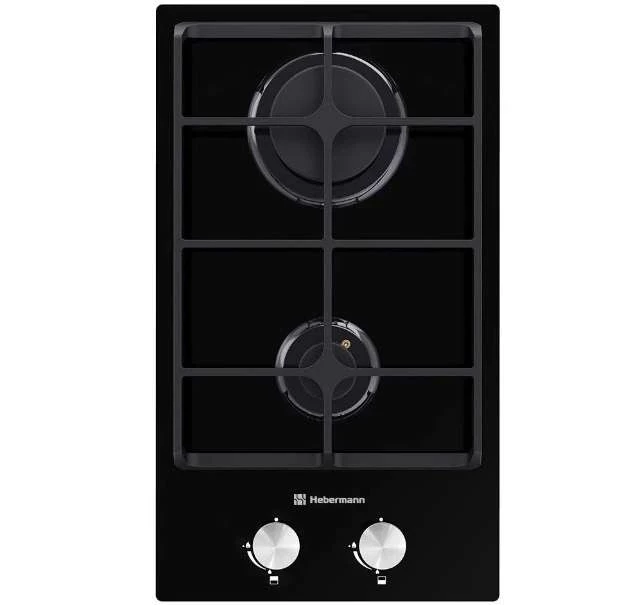 Газовая варочная панель Hebermann HBGG 302.1 B ширина 31 см, закаленное стекло, 2 конфорки
