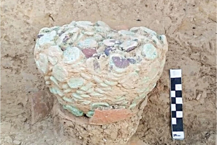 Эксперты оценили обнаружение горшка, наполненного медными монетами, как первую значительную находку артефакта в руинах 5000-летнего города за 93 года.