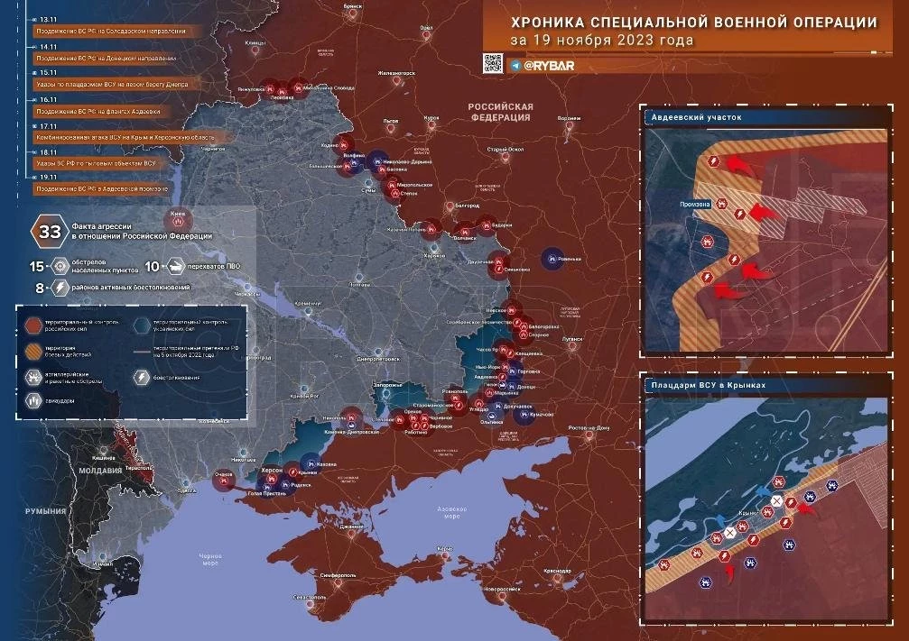 Новая карта боевых действий в зоне СВО на Украине по состоянию на 20 ноября 2023 года