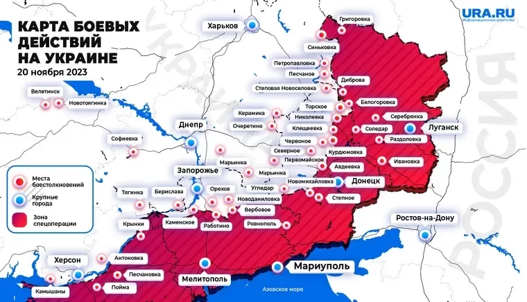 Карта боевых действий в зоне СВО по состоянию на 20.11.2023