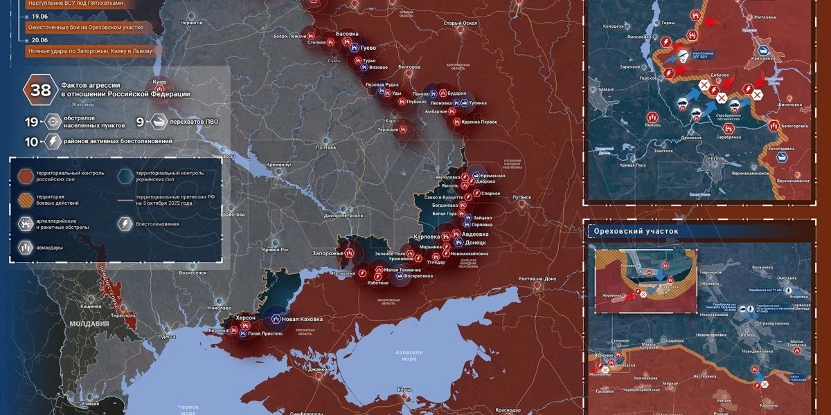 Карта боевых действий на Украине сегодня 21.06.2023 в реальном времени на сейчас