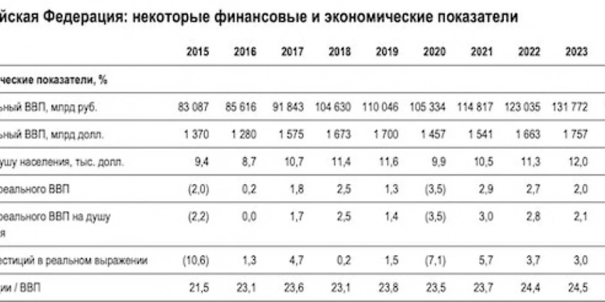 Прошлый год, по оценке S&P, экономика РФ завершила падением на 3,5%. Дефицит бюджета достиг 4,7% ВВП, а инвестиции обвалились на 7,1%.