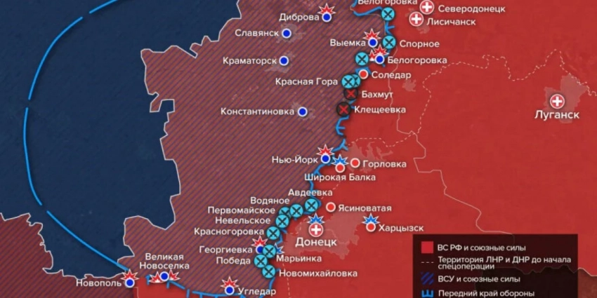 - На Бахмутском (Артемовском) направлении российские силы отработали по целям в Бахмуте, Белогоровке, Красной Горе, Клещеевке и Нью-Йорке.