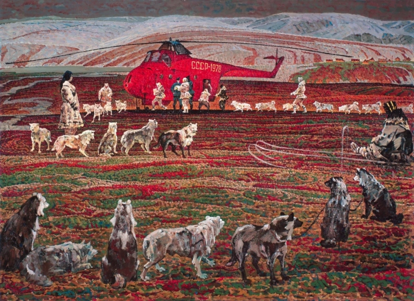 Мастер изобразил вертолет среди ярких растений тундры: в холодных регионах Дальнего Востока в некоторые поселения до сих пор можно добраться лишь по воздуху — так привозят продукты, лекарства, почту. Красный вертолет посреди яркой тундры выглядит особенно живописно. Таким пестрым Север становится в теплое время, особенно в период цветения растений — тогда тундра превращается в разноцветный ковер из мхов, лишайников и мелких соцветий.