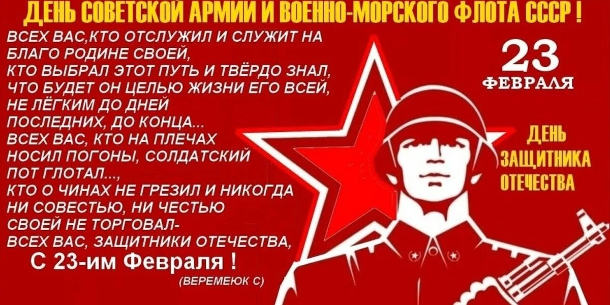 День защитника Отечества! Или, как его продолжают называть те, кто еще успел пожить в великой державе СССР — День Советской Армии и Военно — морского флота.