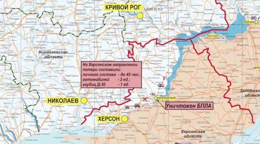 Также в ведомстве 23 июня сообщили, что ВСУ в минувшие сутки продолжали попытки наступать на южнодонецком, запорожском и донецком направлениях. Кроме того, ВС России нанесли поражение 93 артиллерийским подразделениям ВСУ на огневых позициях, живой силе и военной технике в 102 районах, перехватили четыре тактические ракеты «Точка-У», 15 реактивных снарядов системы залпового огня HIMARS и управляемых авиационных бомб JDAM и уничтожили 11 беспилотников ВСУ.