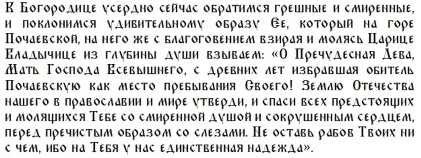 Верующие приходят к Почаевской иконе Божией Матери с молитвами о здравии души и тела, о мире в семье и помощи в материальных трудностях.