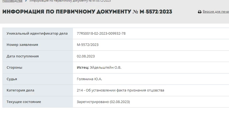 В начале августа 2023 года в СМИ появилась информация о том, что внебрачный сын покойного политика Владимира Жириновского намерен доказать родство с ним через суд. Соответствующий иск был подан 2 августа 2023 года в Никулинский суд столицы, — сообщает «Российская Газета».