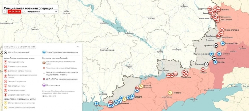 Карта боевых действий на Украине 15.04.2023: данные на сегодняшний о ситуации в зоне СВО