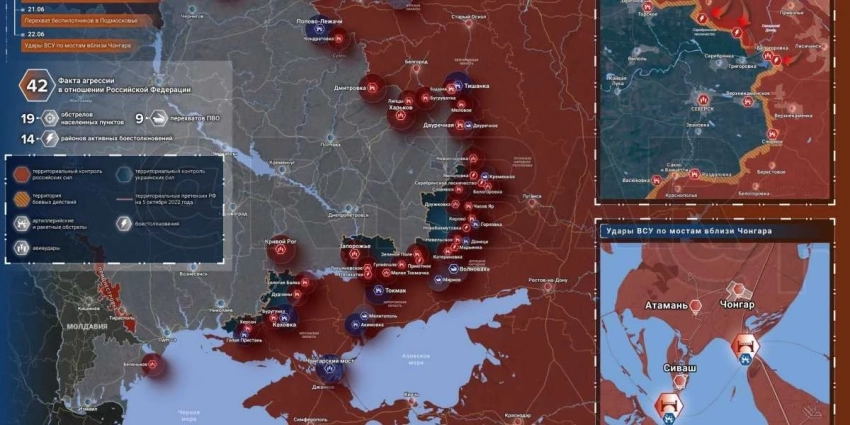 Карта военной операции на Украине на сегодня, 23 июня 2023 года