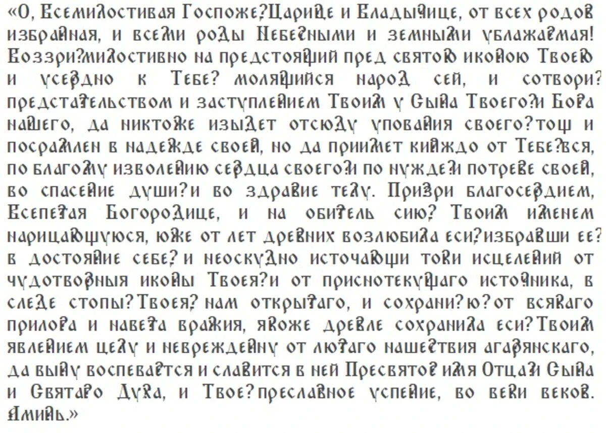 С тех пор верующие молятся Почаевской иконе Божией Матери с просьбами об исцелении от болезней, о благополучии в семье и о счастье. Также эта молитва помогает защищать дом от злых людей.