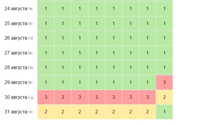 После этого месяц, согласно прогнозам my-calend.ru, будет относительно спокойным. Следующий магнитный шквал ожидается вечером 29 августа. Возмущения опять достигнут 3 баллов с 21:00 по мск. Буря продлится весь следующий день.