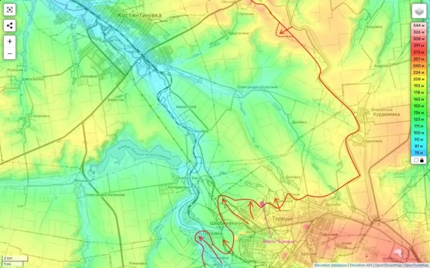 Причем, в первую очередь, идёт продвижение уже в окрестностях, так как сам Торецк практически весь уже зачищен.