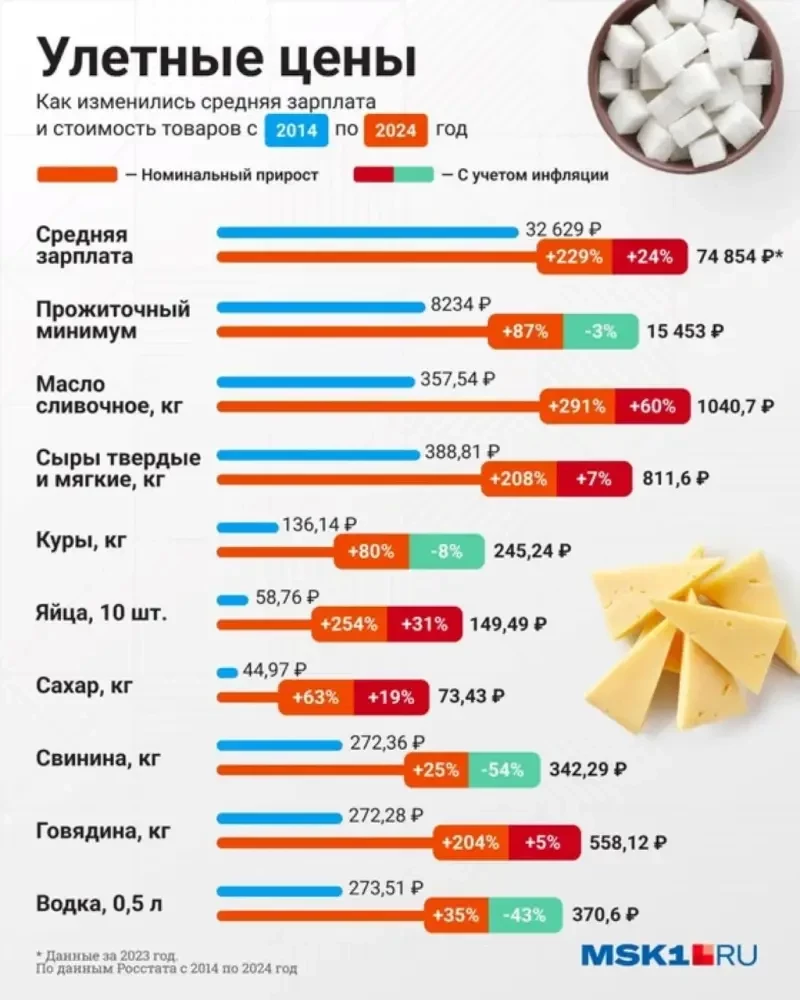 И Росстат не врёт, просто он считает только так, как положено и как приказано – по нормативам и правилам либеральной экономической теории. Так вот, Росстат заверяет нас, что за 2024 год цены в России выросли на 9,52 процента.