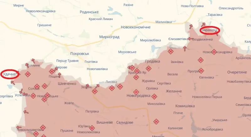 Согласно его данным, продвижение идет в районе Барановки и недалеко от населенного пункта Шевченко. Петренко утверждает, что россияне продвинулись здесь вдоль нескольких лесополос вглубь украинской обороны примерно на 850 метров. А на восточной окраине Удачного они уже контролируют шахтный вентиляционный ствол.