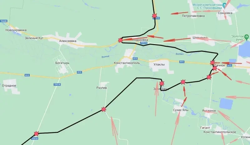 Украинские ресурсы пишут о «сворачивании фронта» в районе Дачного и отступлении в район Улаклы — Константинополь и дальше в район Богатыри, поскольку держать этот район нет смысла. Причина — бои в районе Андреевки, которую российские войска захватили и уже зачищают. А переход этого села под контроль ВС России означает оперативное окружение подразделений ВСУ в Улаклы и Константинополе.
