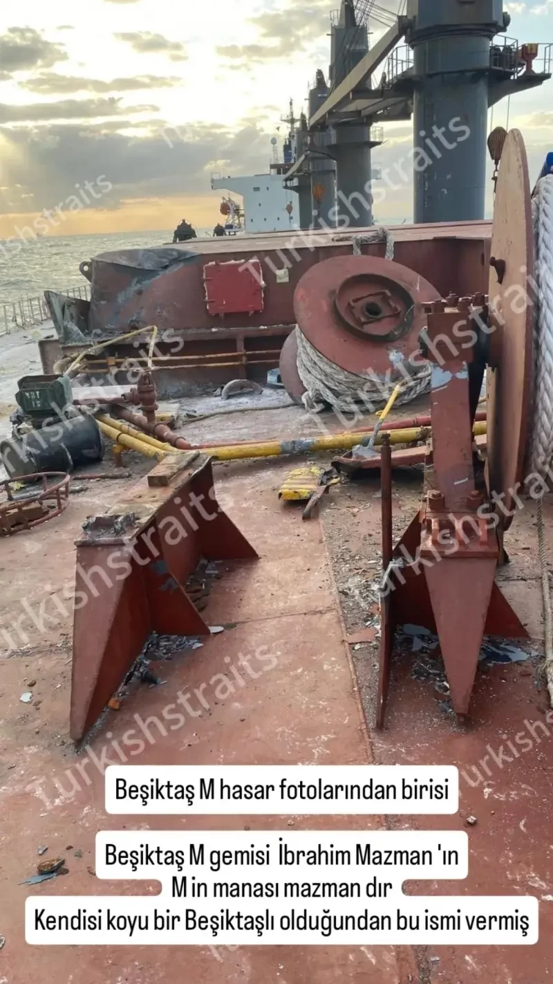 Также появилась фотография, на которой видны повреждения на носовой части правого борта Besiktas-M. Более подробная информация о состоянии грузового судна под панамским флагом и его экипаже пока что отсутствует.