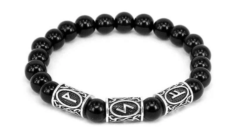 Рунический браслет Богатство на всех уровнях бытия Черный агат