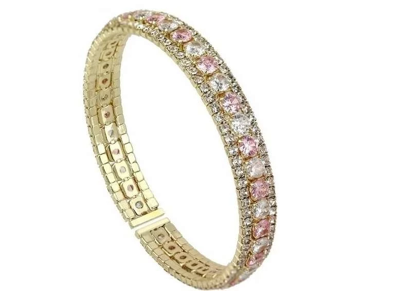 Браслет с цирконием из ювелирной стали с золотым покрытием и австрийским горным хрусталем и бриллиантами