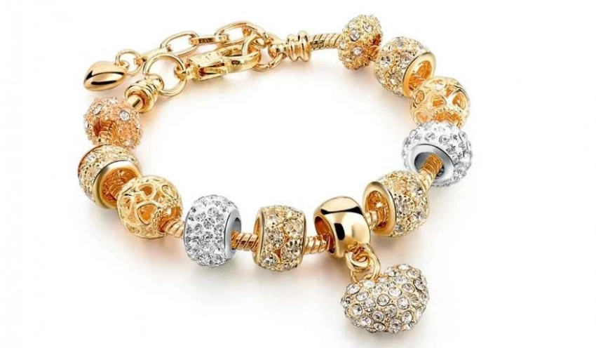 Изысканный браслет Pandora ручной работы с шармами и австрийским горным хрусталем. Благородно смотрится на руке, подчеркивая красоту, женственность и сексуальность девушки. Украшение Пандора роскошно дополнит ваш образ нежностью и чувственностью. Женский браслет состоит из ювелирного сплава с тройным золотым покрытием и нежных шармов, усыпанных сверкающими камушками из горного хрусталя.