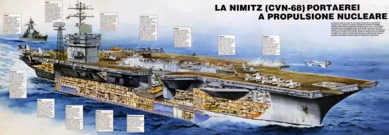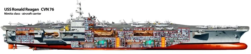 И дальше начинаются вопросы, на которые ни у кого нет ответа. Как поведет себя атомный авианосец в такой ситуации? Может, он не утонет, но произойдет такая утечка, что его придется оттащить на какой-то заброшенный атолл, и там потребуются годы или десятилетия отстоя, чтобы радиоактивность снизилась настолько, чтобы можно было провести ремонт или вывести его из эксплуатации. Перспектива так себе. Но поразить авианосец в реакторную зону очень нелегко. Конструкторы тоже думали в эту сторону, размещая силовую установку как можно глубже.