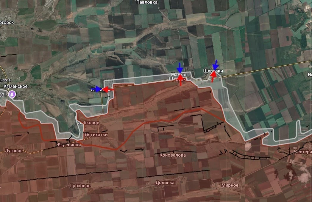 На западном фланге Торецкого направления сообщают о встречном движении ВС РФ из Пантелеймоновки в сторону Зелёного Поля. В районе Валентиновки и Сухой Балки позиционные бои. В самом Торецке бои у Щербиновки и к северу от города.