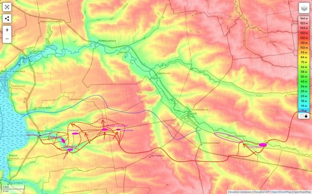 "То есть через Малую Токмачку мы можем зайти в город. Поэтому крайне важно нам нам закрепиться. Отсюда и противник из кожи вон лезет, чтобы это предотвратить", - отмечает Юрий Подоляка в своём Telegram-канале.
