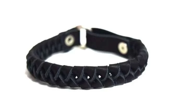 Мужчины уже привыкли носить кожу на запястьях в виде ремешка для часов, поэтому кожаный браслет не станет большим скачком в мир ювелирных изделий. Позитивным аспектом кожаного браслета является то, что он сохраняет чувство мужественности. Кожа как материал – универсальна, поэтому в зависимости от стиля и размера браслета он может выглядеть формальным, одновременно проявляя мятеж. Твердая или плетеная кожаная манжета – классический панк – стиль.