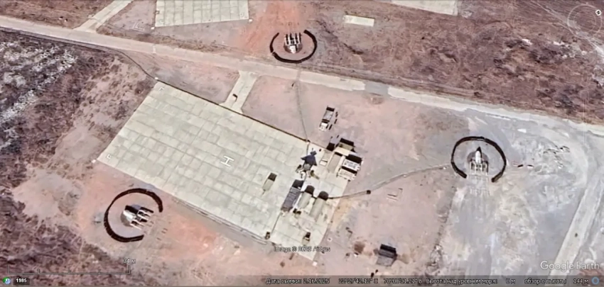 Спутниковый снимок Google Earth: позиция перуанского ЗРК С-125М, расположенная неподалёку от границы с Чили.