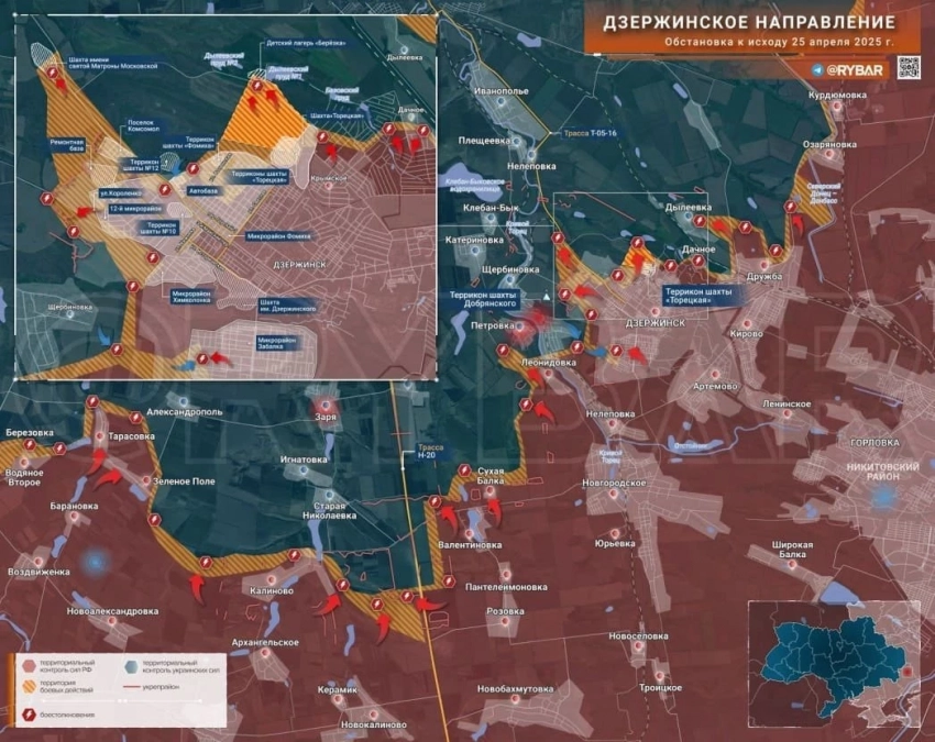 На Дзержинском направлении российские войска достигли территории детского лагеря «Берёзка», закрепление в котором в дальнейшем создаст угрозу полуокружения группировки ВСУ севернее Дзержинска.